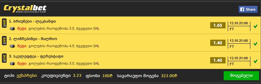 მაგ: ფავორიტი გუნდი რო იგებს და წაგებაზე რო დაუდებ