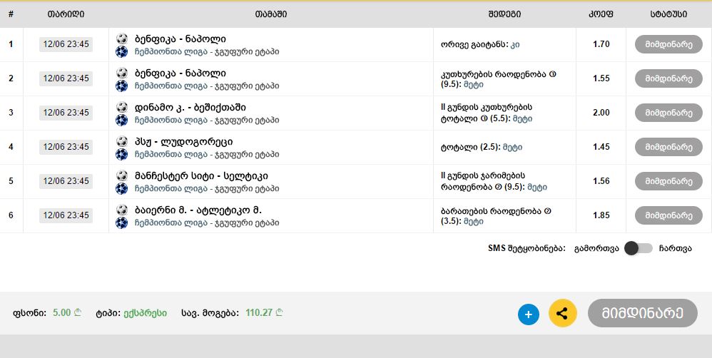 ბეშიქთაში გოლების რაოდენობა 0.5ზე მეტი