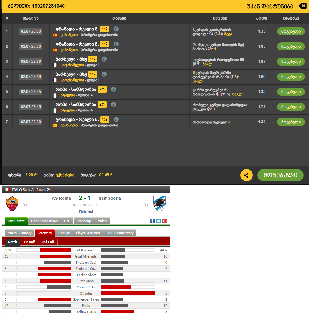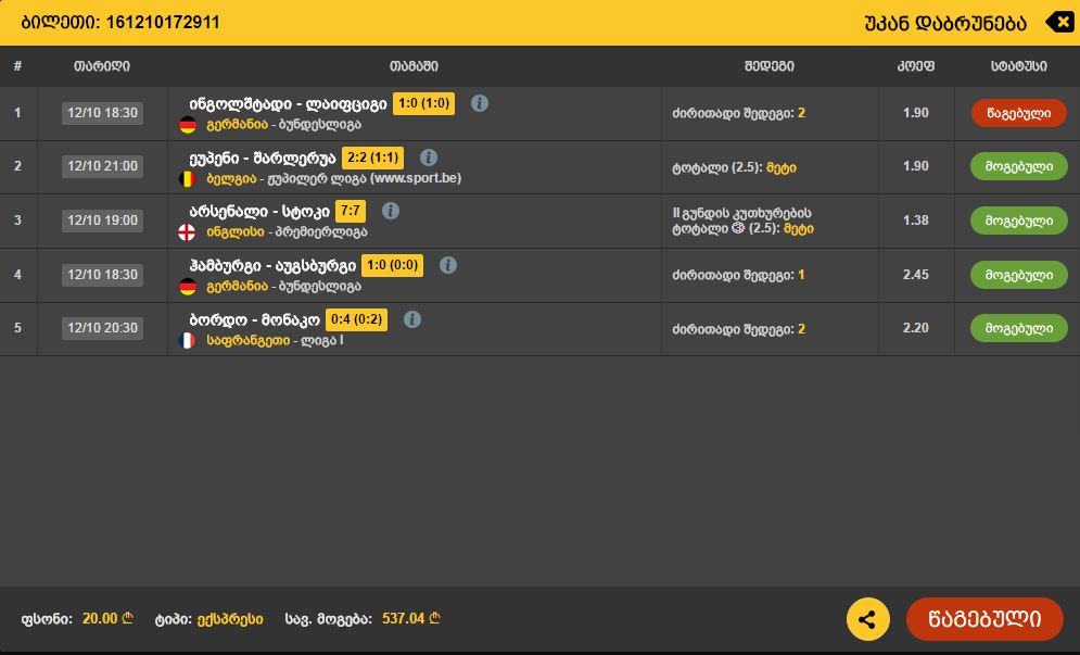 კრისტალზე გუშინდელი მოგებული ჩაგერიცხათ? თუ ორშაბათს ირიცხება