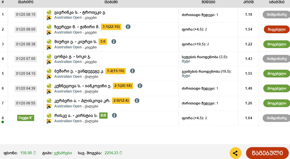 ჩაწყობილი ქონდა ეგ თამაში კუზნეცოვას. ჯერ პირველ სეტში 5-2 40:30-დან 5-4 გახდა 6-2ის მაგივრად. მერე 6-4 4-1 იყო ასევე 6-4 5-3 და წააგო სეტი. ბოლო 10 გეიმიდან 9 წააგო კუზნეცოვამ. ნეტა დანებდეს, მაგრამ არამგონია.