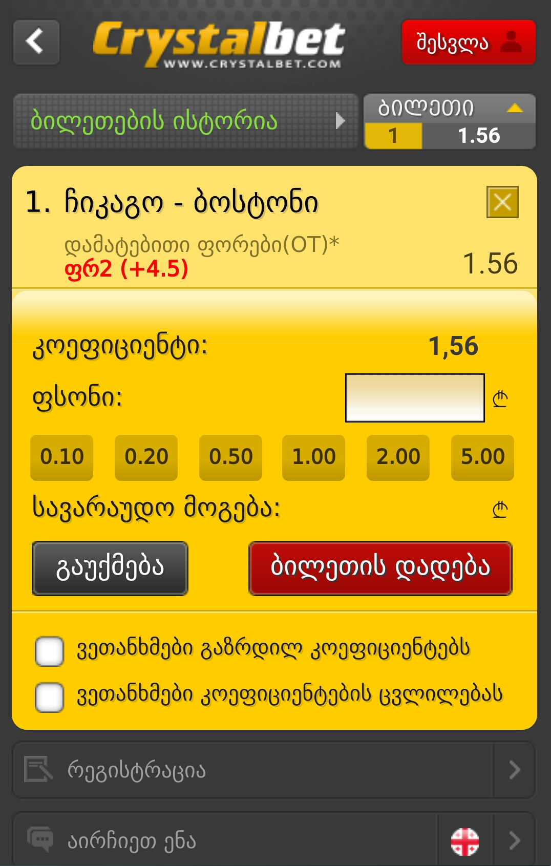 ესეიგი მინდა ბილეთში რომ ჩავწეროთ: შახტარის 4 კუთხური. ლიდერზე დაბალი აქვს კოეფიციენტი კრისტალზე არვიცით... შესაბამისად თუ გვვეყო ეს ჩამიწერე