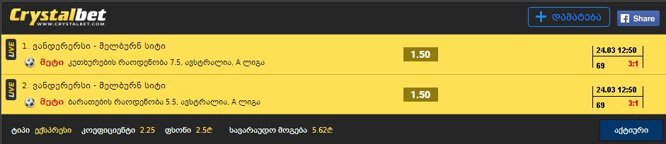 გოლების რაოდენობა პირველ ტაიმში 3.5