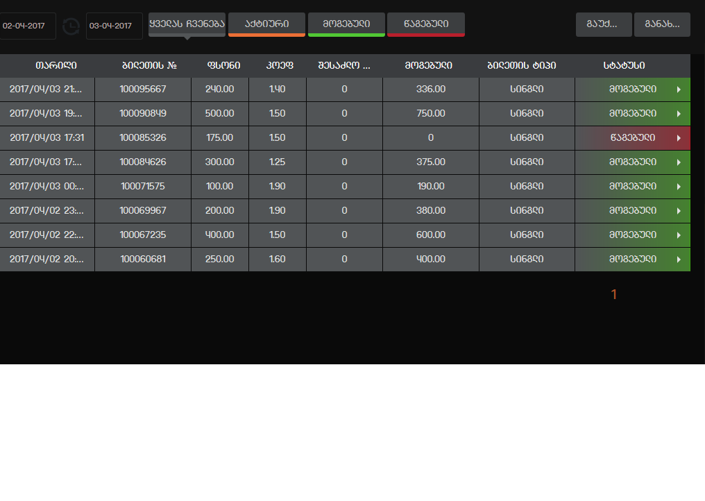 ტოტალიზატორი, GREEN