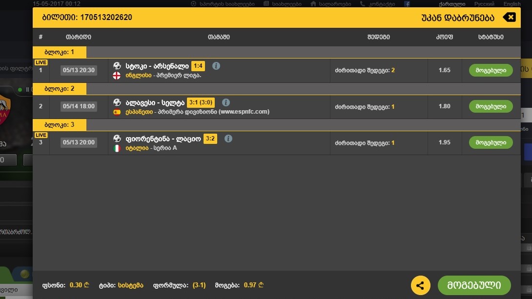 სოსიედადი ძალიან არ განვიხილე და ვნანობ, შეიძლება გაგეცინოთ მაგრამ რაღაც მაინეტერესებდა და თვითონ გავარკვიე, მინუსების სისტემაში აწერია თამაშის დამატება ლიდერბეთზე მაგრამ არ ამატებს რეალურად და 10 თეთრი დავდე ეგ რომ გამერკვია მაგიტომ და მინუსენბსი სისტემამ გადააქცია 30 თეთრად, და მაგიტომ არის ეს ბილეთი თორემ მე ხურდებს არ ვდებ.