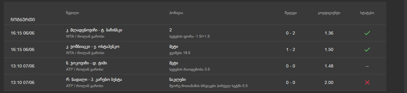 რა მაინტერესებს პირველი სეტის ნაკლები ბრეიქი ამოვარდება რაფასთან?