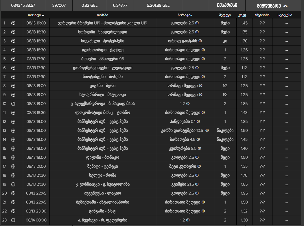 ყველა ფსონი მიღებულია