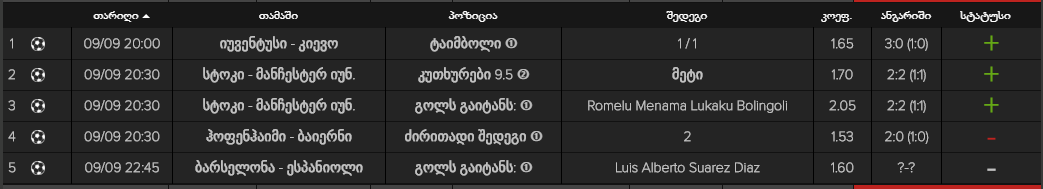 ორმაგი შედეგი/ტოტალი ① 1.5 მეტი/1X