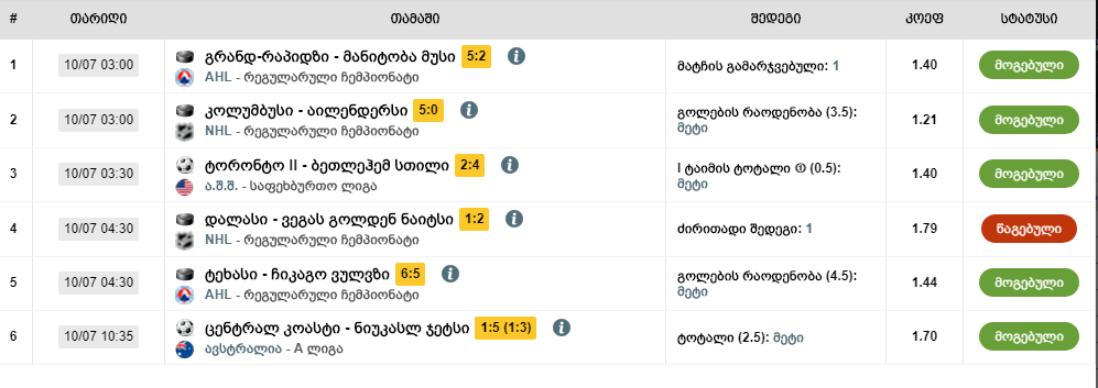 ყველა ფსონი მიღებულია, დანარჩენები ხვალ