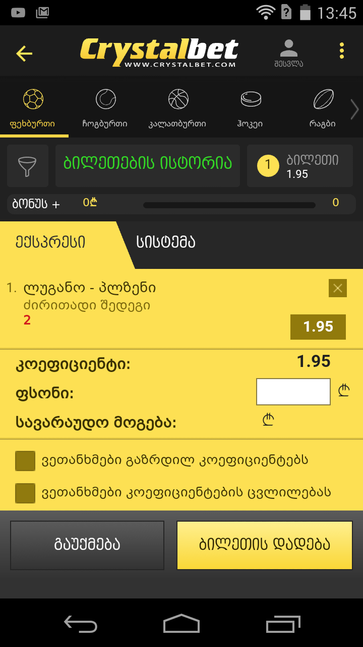 Crystalbet-ის გათამაშება