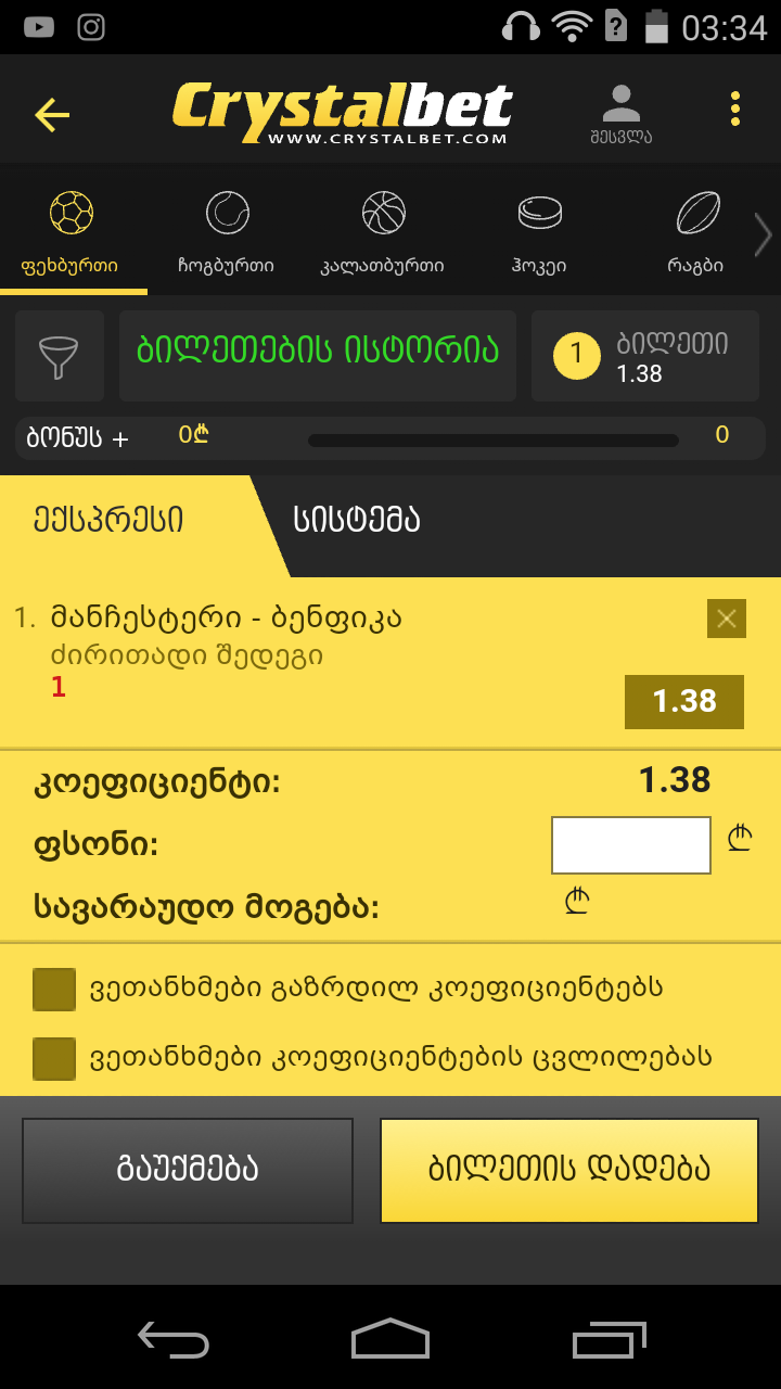 Crystalbet-ის გათამაშება