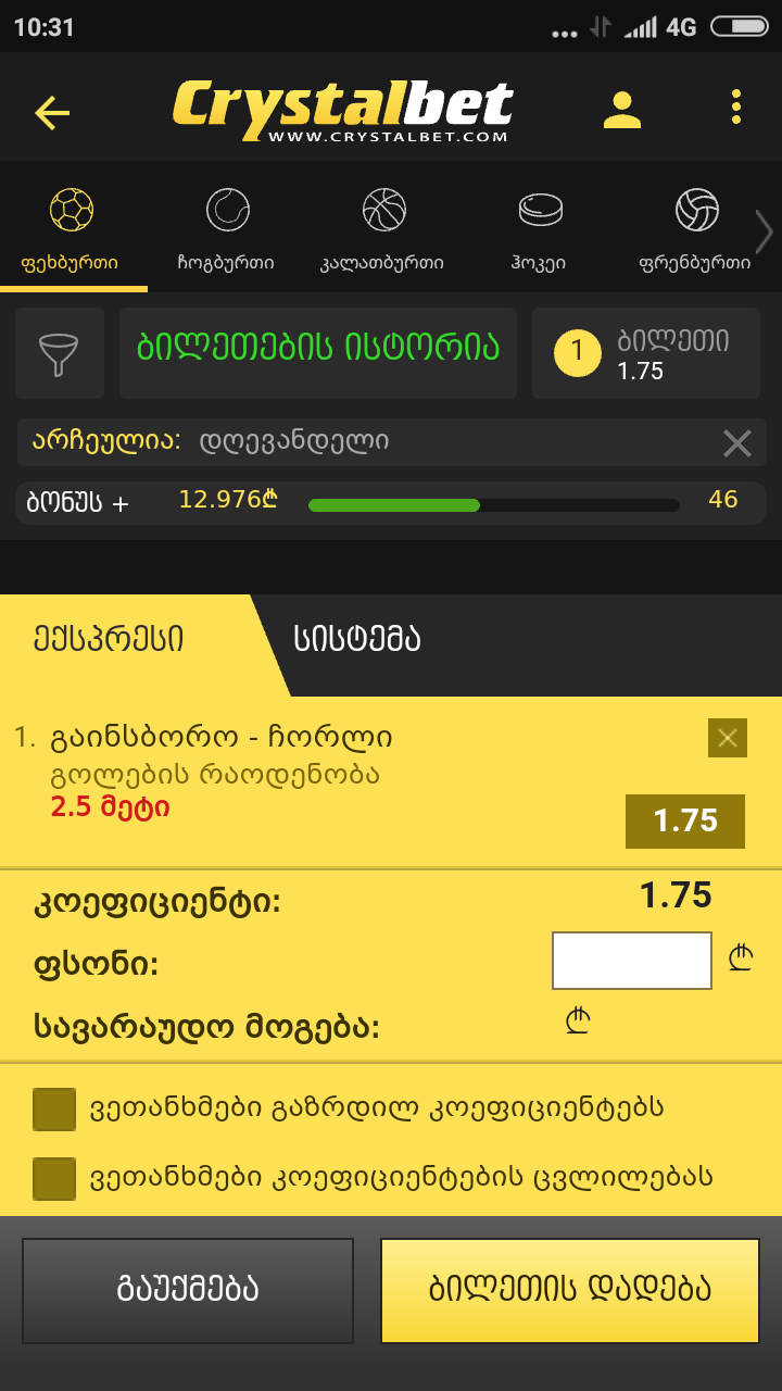Crystalbet-ის გათამაშება