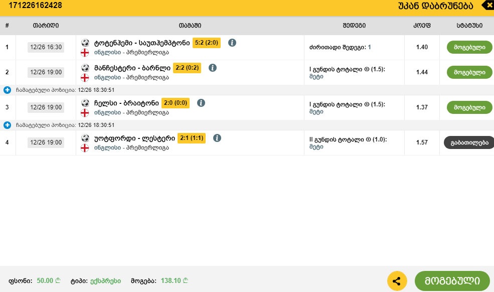 კი ბევრი ფსონი დაგროვდა ამ თამაშიდან, მარა იქნებ ჩამისვა, კარში დარტყმები არავის უწერია მგონია-