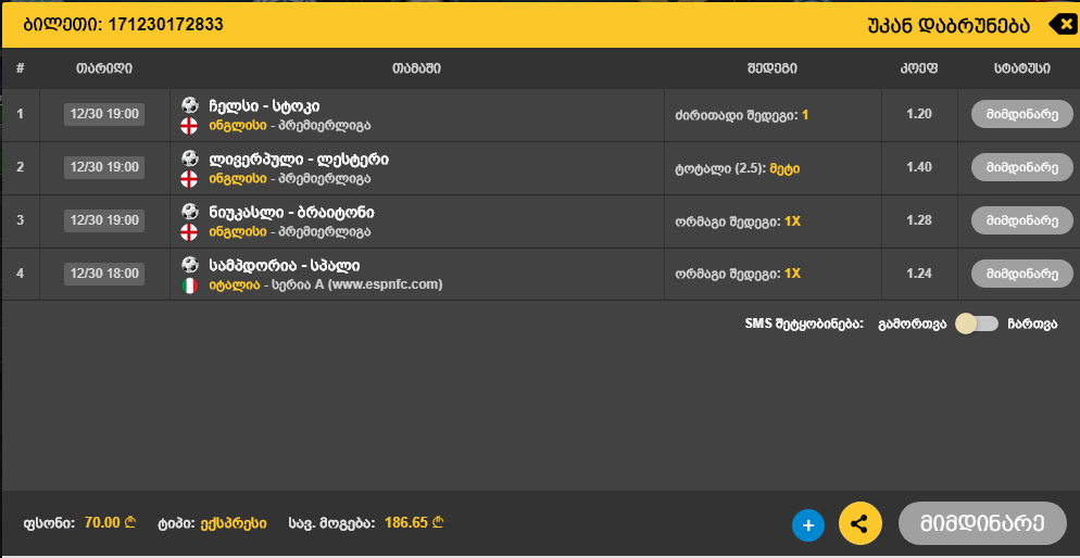24 საათის განმავლობაში უნდა დაიდოს ფრიბეთ ბილეთი და იმ დღის თამაშები უნდა დაიწეროს