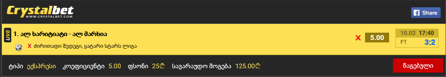 ორივეს გატანას ბეთზე 1.5 აქვს ამ წუთისთვის