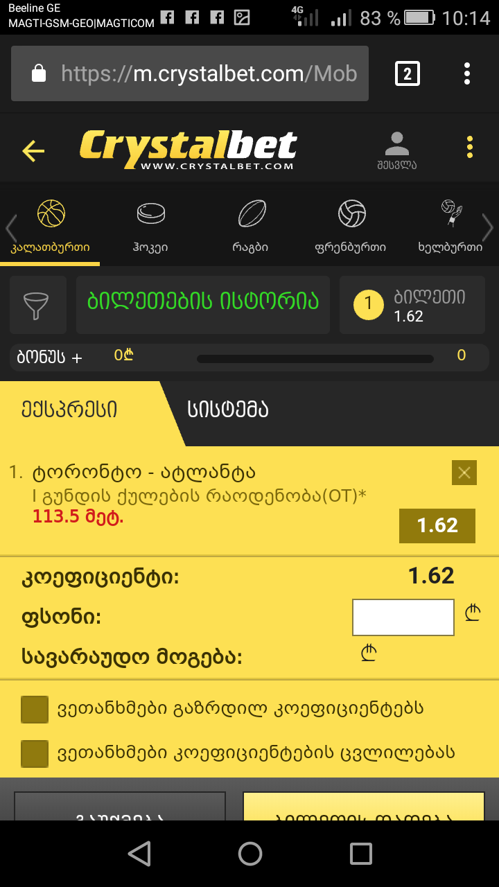Crystalbet-ის გათამაშება