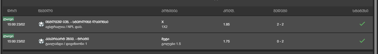 პირველი გუნდის ნაკლები ავიღე მაინც თავის დაზღვევის მიზნით @1.4 კუშად