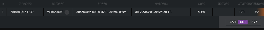 პირველი ტაიმის 1.5 მეტი როგორც მინიმუმ დაიდება