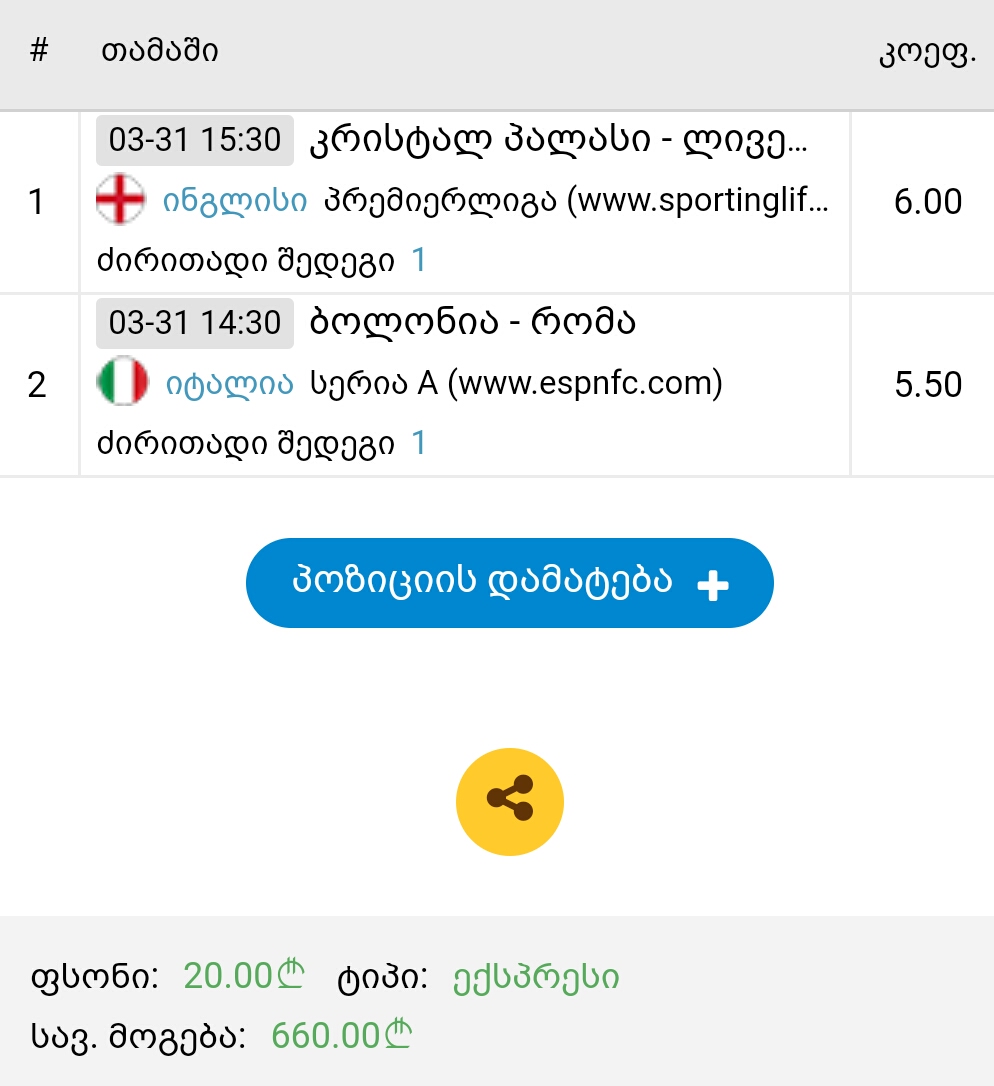 კაცურათ ახლა არ დაიწყო გოლი გავა ამადა ამ წუთზე ... იყოს კაი ანგარიშია რას ერჩი © როლანდ