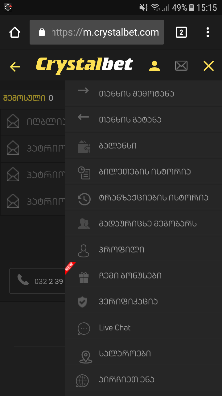 საათზე მეტია დასრულდა და არ დაურიცხავს თანხა კრისტალბეტს ჩემთან