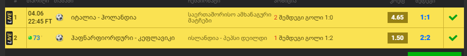 x2 გოლების რაოდენობა 2.5 მეტი თუ დააკლდა მეორე ჩაწერე