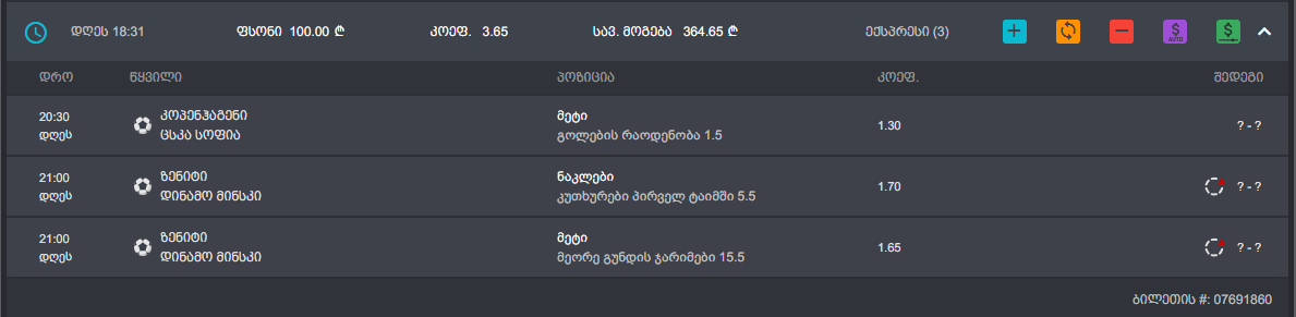 1,77 ლიდერზე ისე ბეტ365 ზე მინდოდა მარა გადავიფიქრე ფეხბურთი არ მევასება