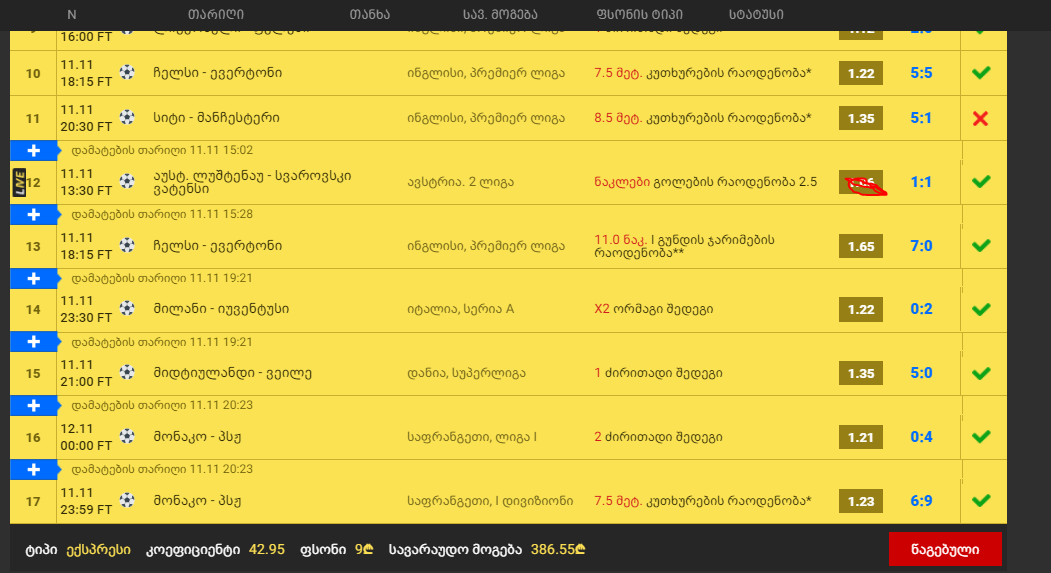ეხლა დავთვალე და +750% გავედი დღეს პლიუსში. ნუ ბარსას საჩუქარით იასნა 11 კუში.