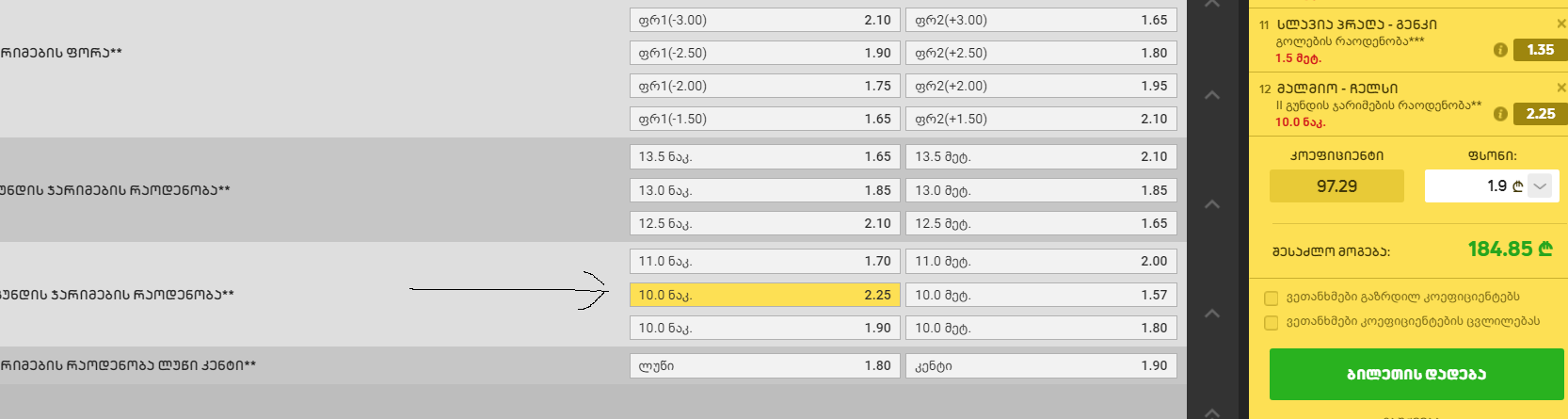 პირველი გუნდის მეტ ჯარიმას 1.35 აქვს და ესეც ძალიან კარგია.