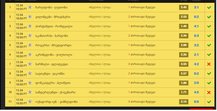 UsLovRშენ ბილეთებს რასაც ვუყურებ დაბალ კოეფიციენტებზე თამაშობ და ეხლა ჩოგბურთში სვიატეკის 1 იანი 100% იანი არის. ტურნირის ფინალია და არ ნებდება ჰერცოგი, ტრამვიანი თამაშობს არადა. გამოვიდა ექიმი კორტზე და მასაჟები გაუკეთა მარა ვერ თამაშობს მაინც