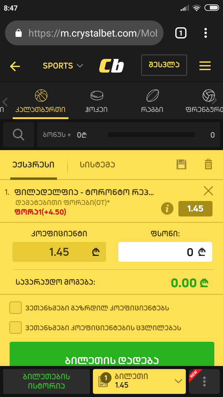 Crystalbet-ის გათამაშება