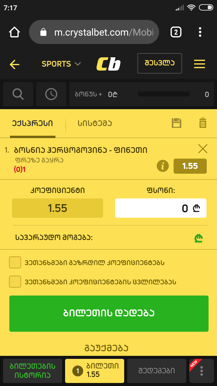Crystalbet-ის გათამაშება