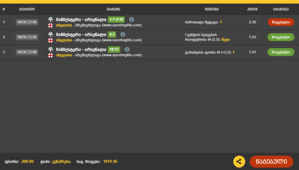 მეგობრებო ვინმეს თუ გქონიათ ამ პოზიციაზე ფსონი ? შუაში ან რომ წერია რატომ არის საჭირო რომ ორივე პირობა შესრულდეს ?