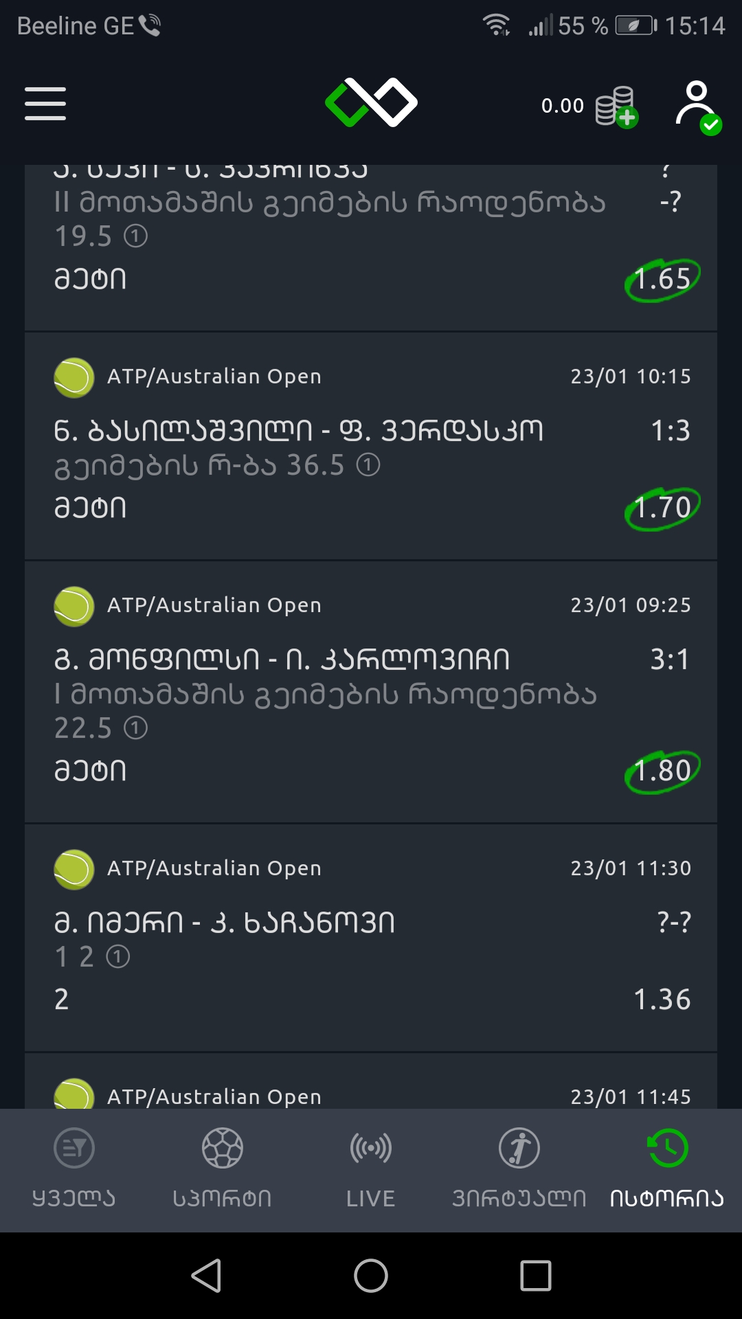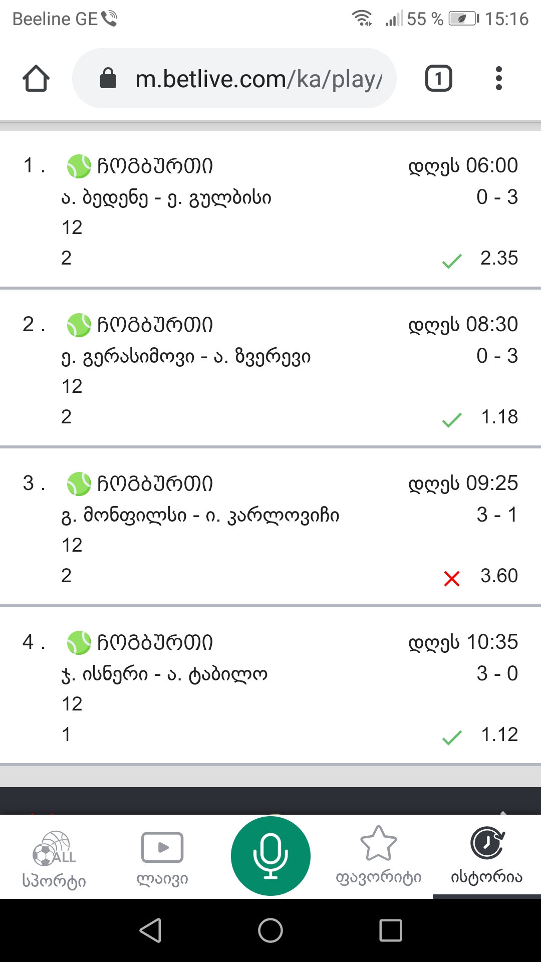 დღეს მგონია სვიტოლინა-დევისი ფ2 +3,5 3.5 კუში აქ. ცოტა ფორას თუ მოუმატებთ ჯობია მარა მგონია სამ სეტიანი ეს თამაში