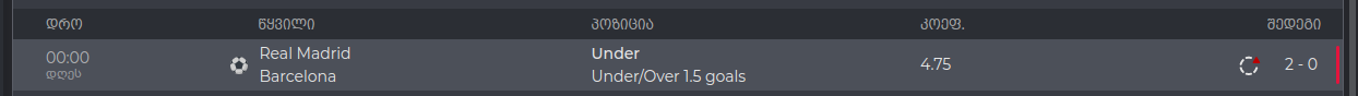 რეალის 1.5-ზე მეტი გოლი და 15.5ზე ნაკლები ჯარიმა