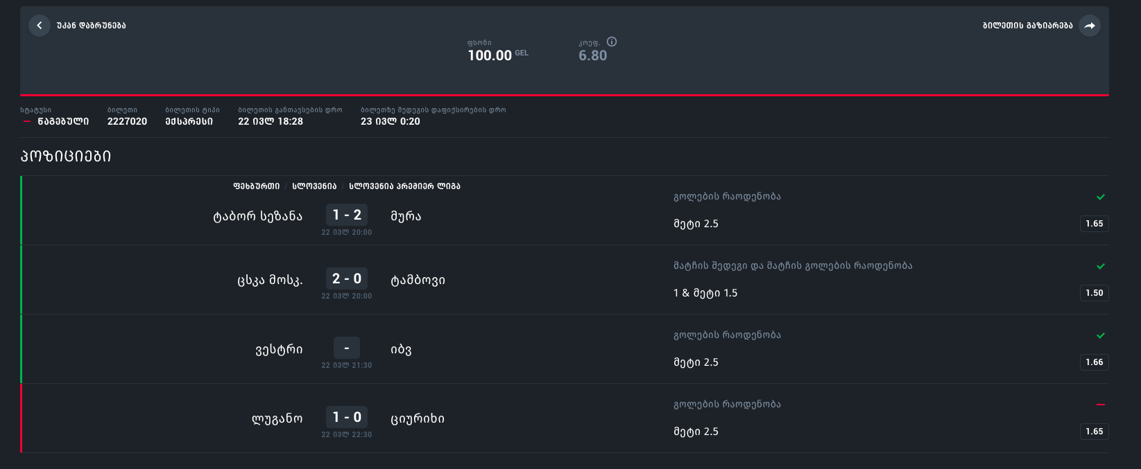 ისეთი შთაბეჭდილება დამრჩა რომ ვიღაცეებმა ზემოდან დაურეკეს ციურიხს რომ , გოლები არ გაიტანოთ თბილისიდან ვიღაც ბიჭი იგებს 600 ლარსო
