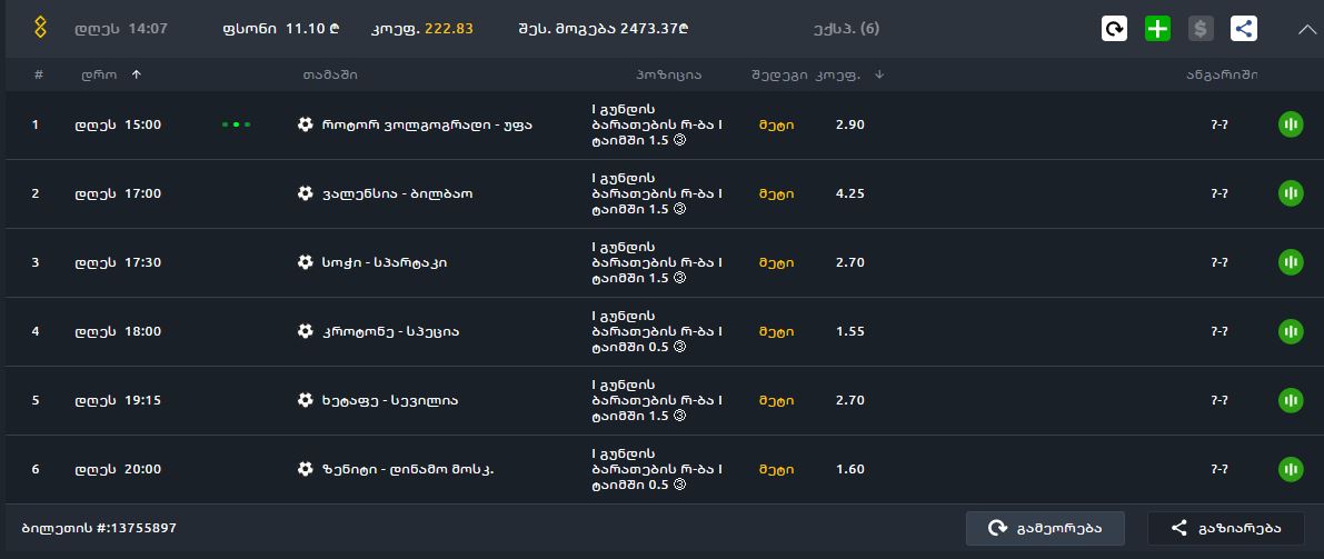 ვერ ვნახე ვერსად თამაშამდე, ეს 1 მინდა ეხა და კიდე დავამატებ ერთ 50 ლარს რამდენიმე ბარატაძე