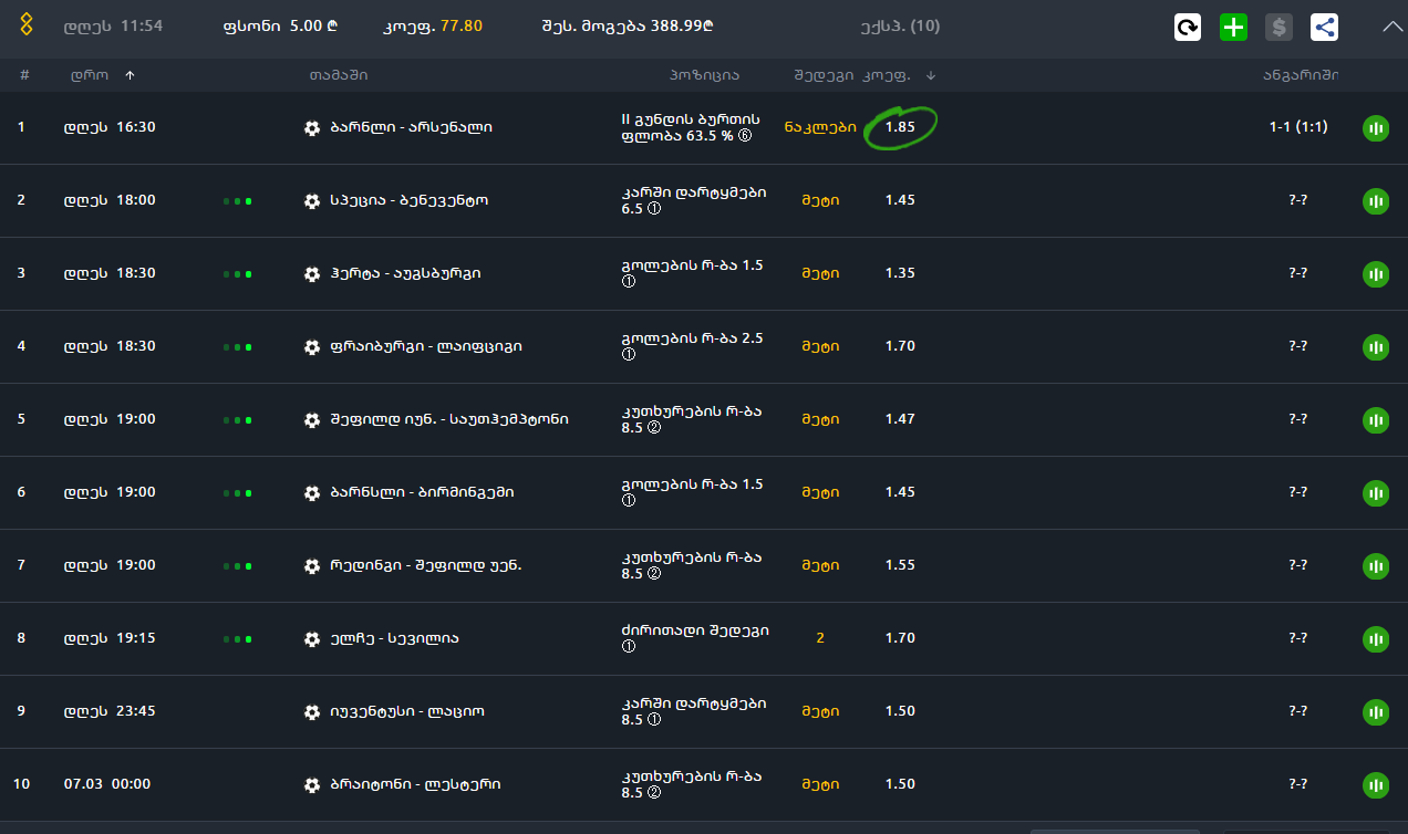 ზოგადად ინგლისში 8 კუთხურზე მეტი უნდა დადო ბუნდესლიგაშიც ხო?