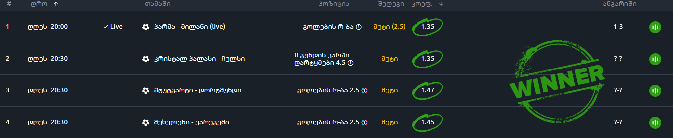 ტოტალიზატორი, ALL GREEN