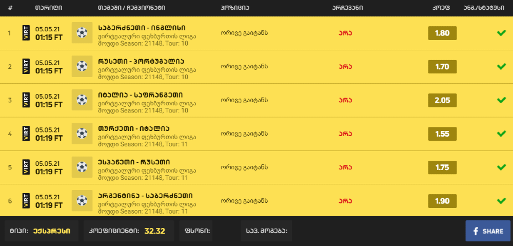 მე კაი ვგულშემატკივრობ და მუღამი მივეცი ფსონით მაგრამ შენ რატო დაწერე რეალის გასვლა ?