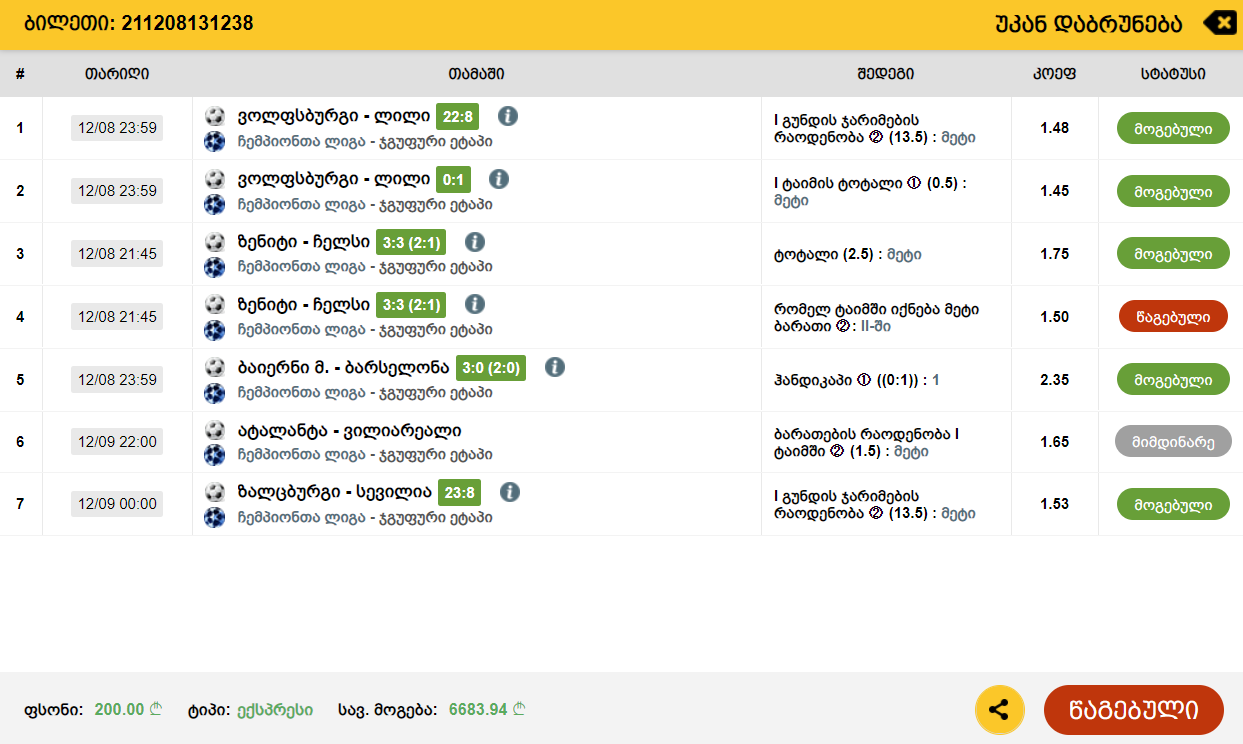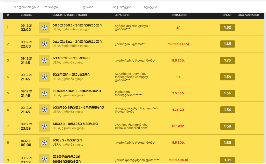ლეგიას კის და მეორე ტაიმში 3.5 > ბარათს