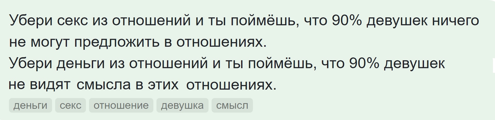 ანუ ბოზი რომ ვარ ამაშიც აქეთ ფული გადამიხადეო ქმარს წველის! რისი ღირისა ასეთი ქალი?! დიდსულოვნების?!