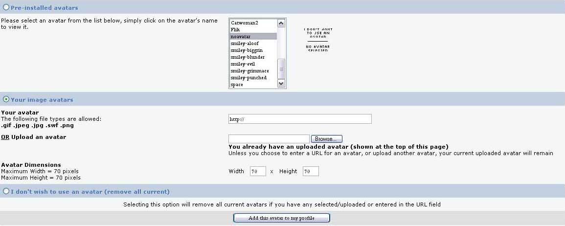 მოკლედ, საიდანაც ბრაუზს აძლევ ავატარის გამოსაცვლელად იმის მაღლა არის წვრილი გრძელი ფანჯარა და წერია http(ეგ ამოშალე ) და ჩასვი ეს ლინკი
