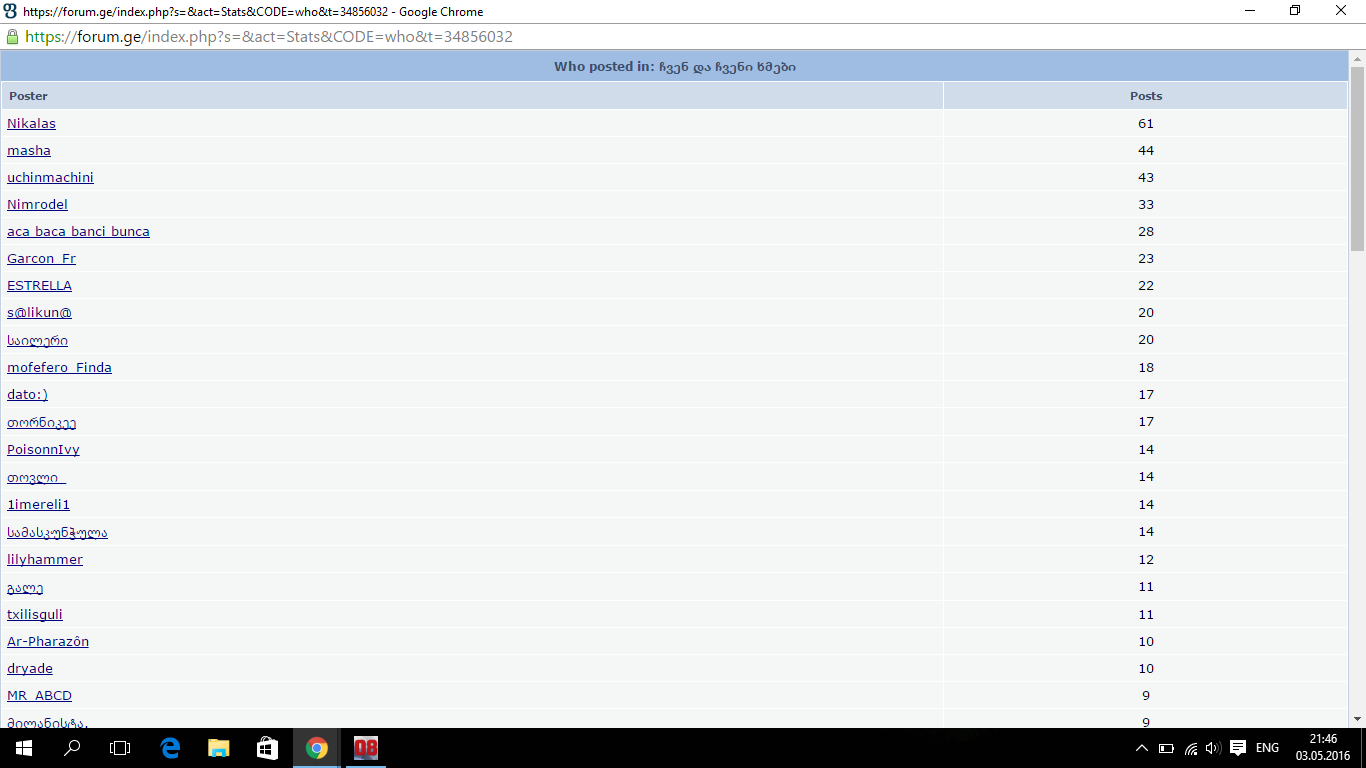 1 მომხმარებელი ათვალიერებს ამ თემას (1 სტუმარი და 0 უჩინარი წევრი)