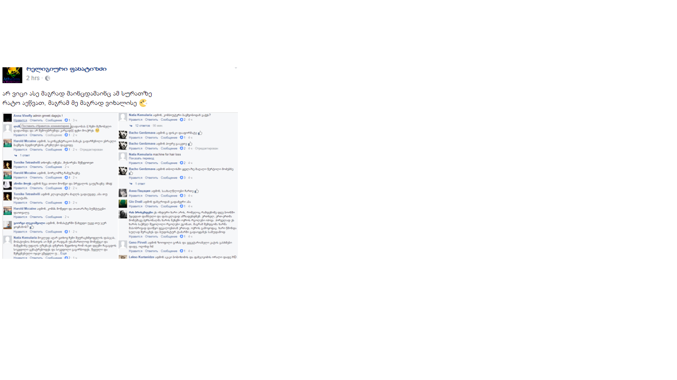 დავტროლოთ ფეისბუქი და გამოვაცოცხლოთ უსათაურო გიო მეჯიქმენმა თითქოა არაფერი მაგრამ ძაან მაგარი რაღაც გააძრო და ჩვენც შევესიეთ, საქმე წარმატებულად წავიდა.https://forum.ge/?showtopic=34917675&f=&st=90&#entry49620572