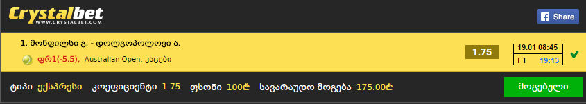 ანგარიში ნახეთ მონფილსი - დოლგოპოლოვი 6-3 6-4 1-6 და 6-0 მინდოდა მხოლოდ და დასვა ძმამ