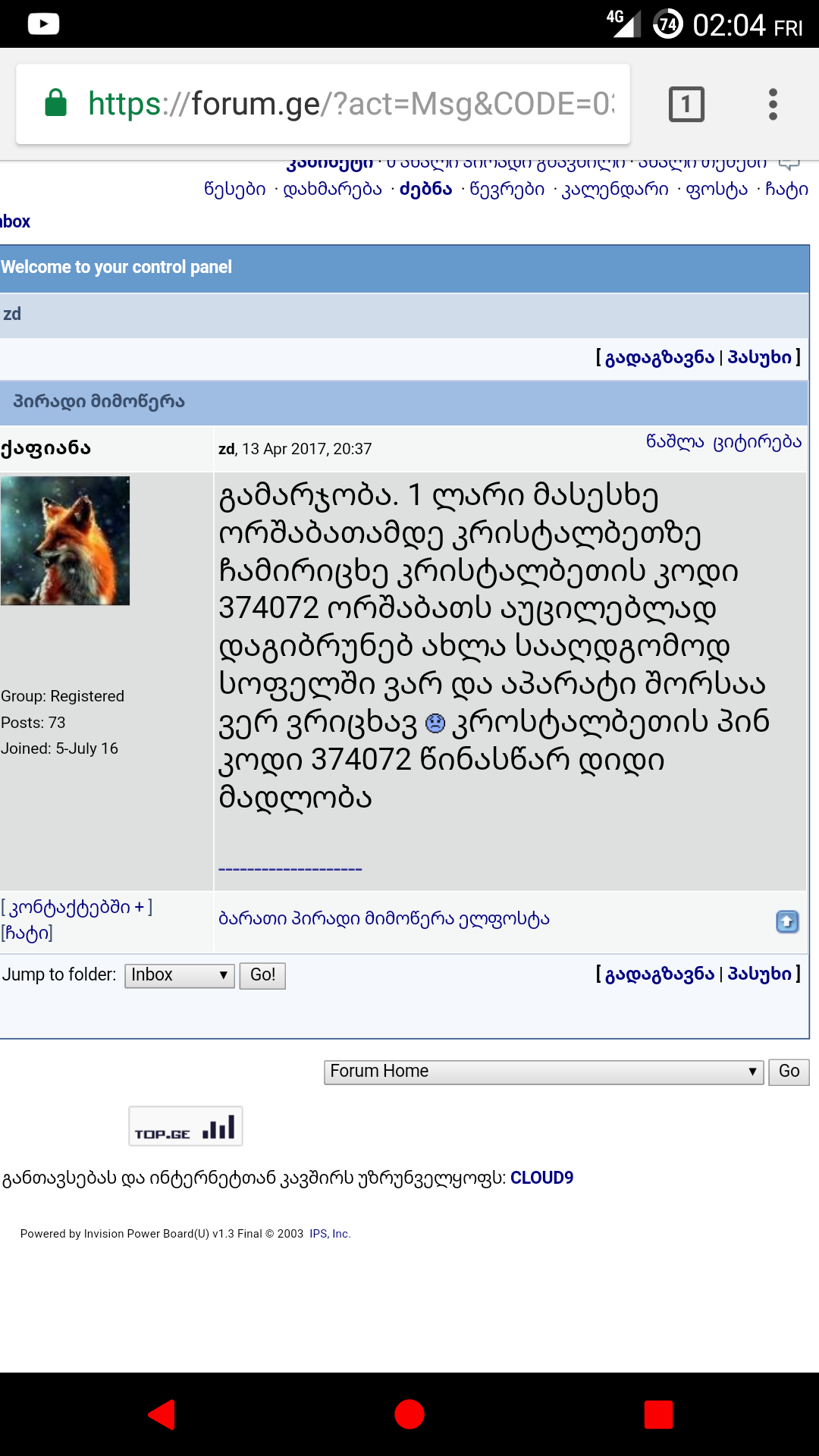 ფორუმის სერვერების განთავსებას და ინტერნეტთან კავშირს უზრუნველყოფს: CLOUD9