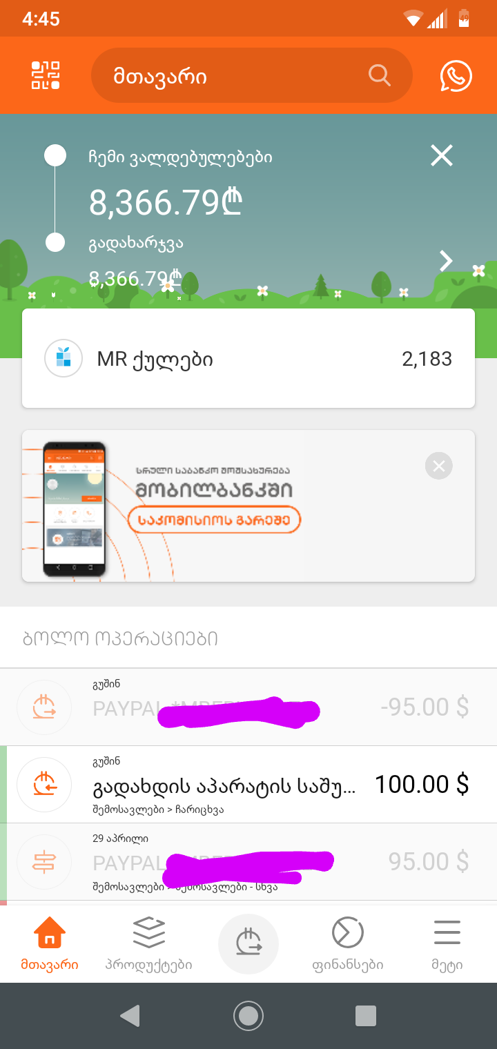 იმ დღეს შევედი ინტერნეტ ბანკში და ეს ფული დამხვდა ანგარიშზე, ეგრევე გამოვიტანე