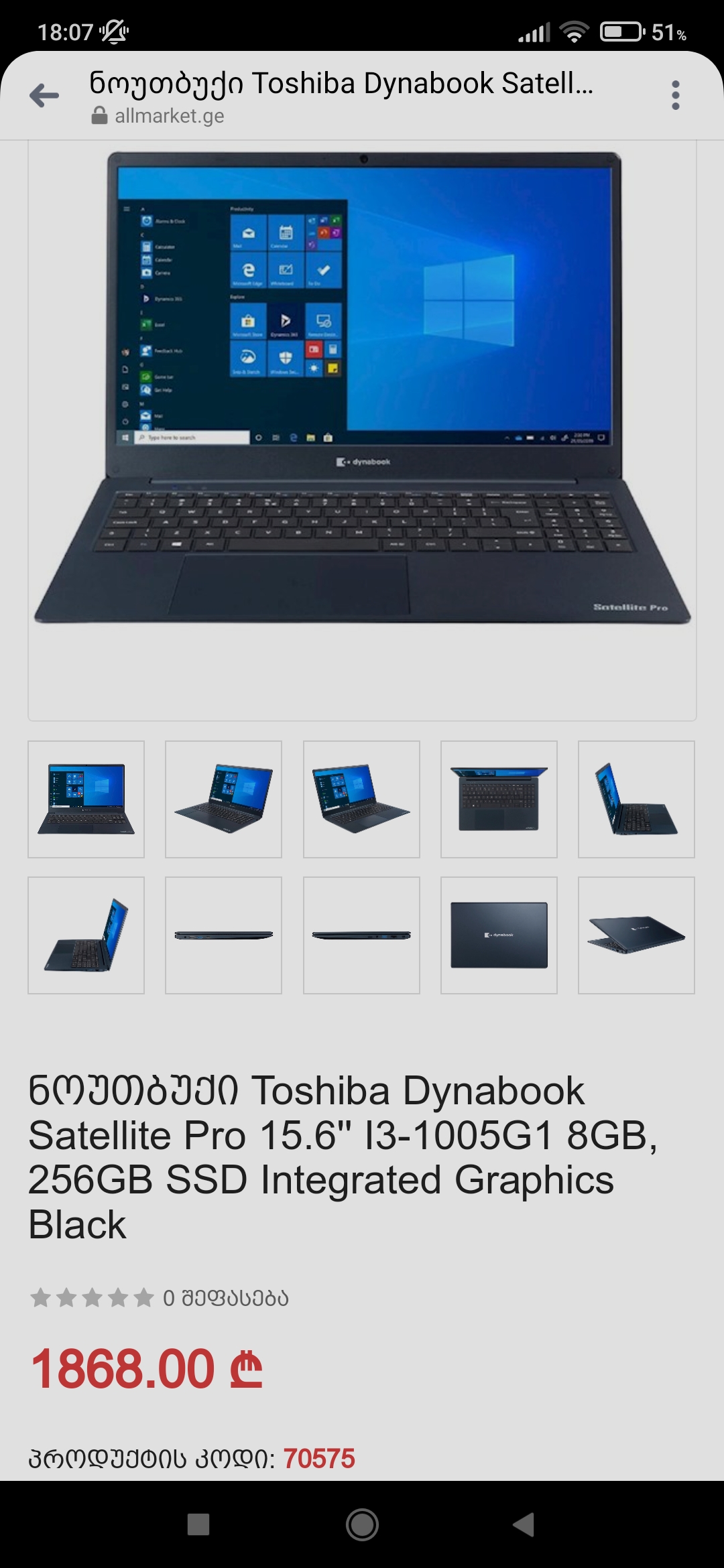 იყიდება ლეპტოპი Toshiba Dynabook Satelite pro