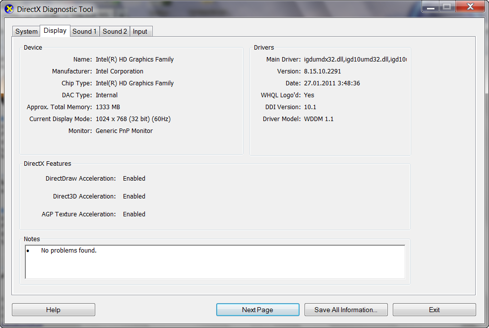 რანში ჩაწერე dxdiag გადადი დისფლეი ტაბზე და მანდ ნახავ