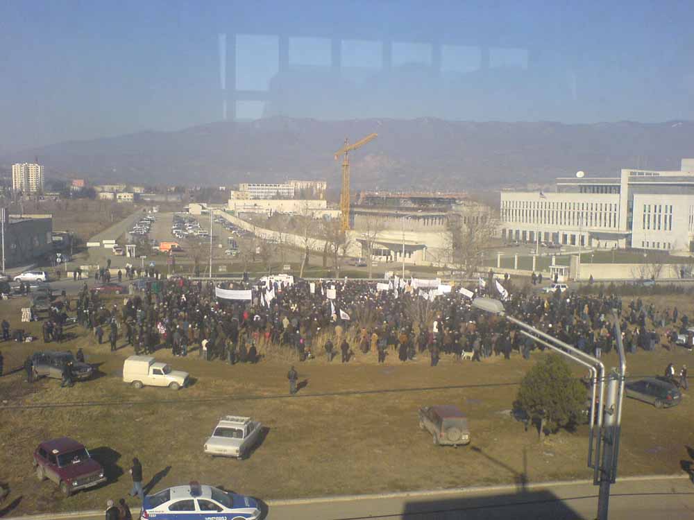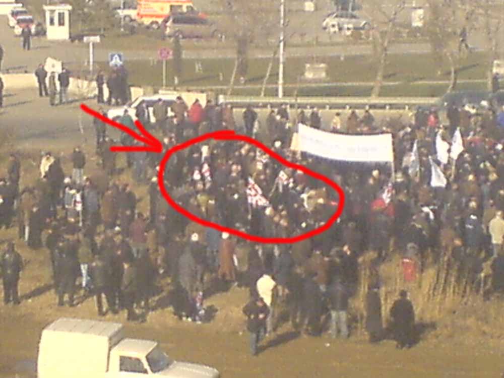 მიტინგი ა.შ.შ-ს საელჩოსთან, ქუდზე კაცი