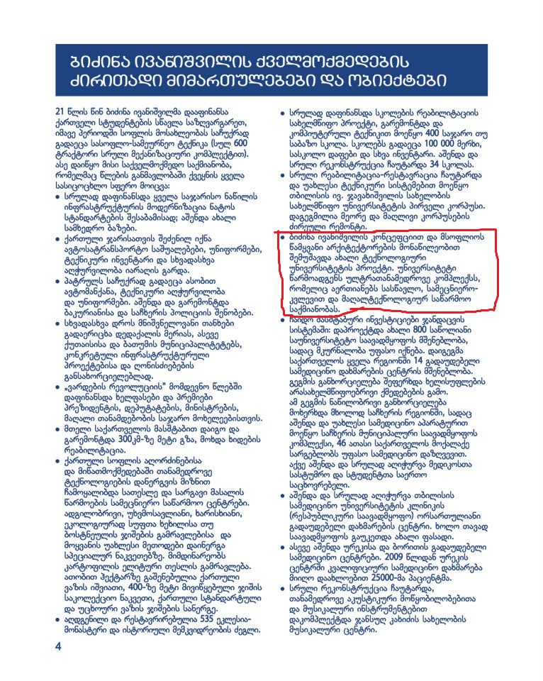 აღარ ვლაპარაკობ ისეთ წვრილმანეზე როგორიცაა ბათუმის და თბილისი ბტანიკური ბაღების რესტავრაცია, დიდველის ტრასის მშენებლობა , დელფინაირუმი, ეშმაკის ბორბალი, შეჯვეთილის პარკი და ათასი წვრილმანი..